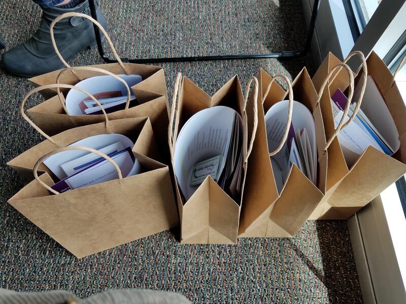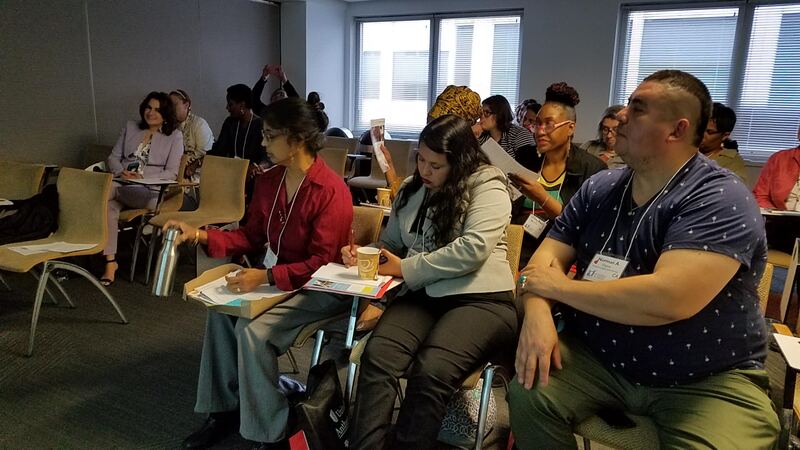 Navajo Family Voices with case managers at New Mexico Income Support Division in Farmington following a presentation on July 18, 2019