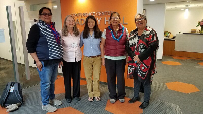 Hazel James and Elvira Dennison posed with wonderful buffalo dancers at the Tribal PRAMS Symposium.