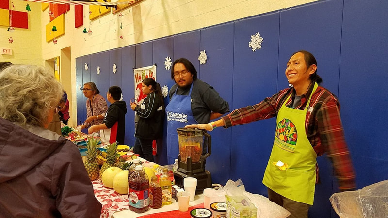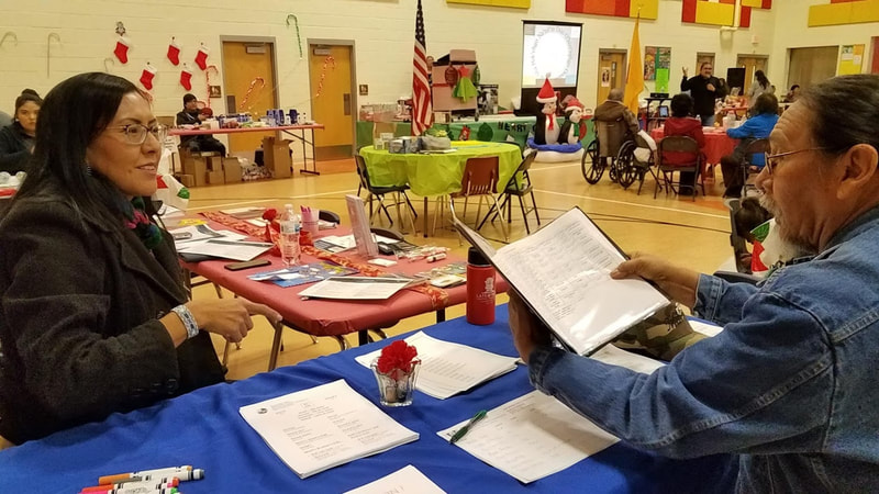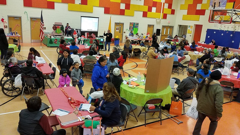 On Dec 11, we joined our partners and collaborators Indian Health Services, Shiprock Food Hub, San Juan Collaborative for Health Equity, and Childrens Medical Service to put on the Winter Family Conference for family wellness at the Shiprock Youth Complex, bringing in Dr. Vincent Werito from UNM-TREE to present on Diné wellness principles in family support networks. Dr. Werito and Ray Deal both led 2 hours of clan stories. Kyle Jim presented a food demonstration in healthy fruit smoothies and served food to over 200 family members. Tisa from CMS and Elvira and Josey of NFV, joined by Elvira's family, asked "What is your vision" for wellness and healthcare? at our arts and health booth.