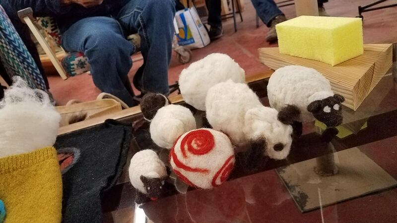 This spin off hosted by Les Wilson and Irma Henderson of Two Grey Hills Trading Post was a unique teaching event on one use of Navajo churro wool, and on building trust and community. It was pot luck, filled with laughs and attended by master weavers. Future spin offs may be geared towards cultural immersion of doctors and teachers. Present included Les, Irma, Sarah Natani presenting on felt making, Rose Chico, Gilbert Begay, Betty Yazzie, Mary Charles and others plus Josey and Megan from NFV.
